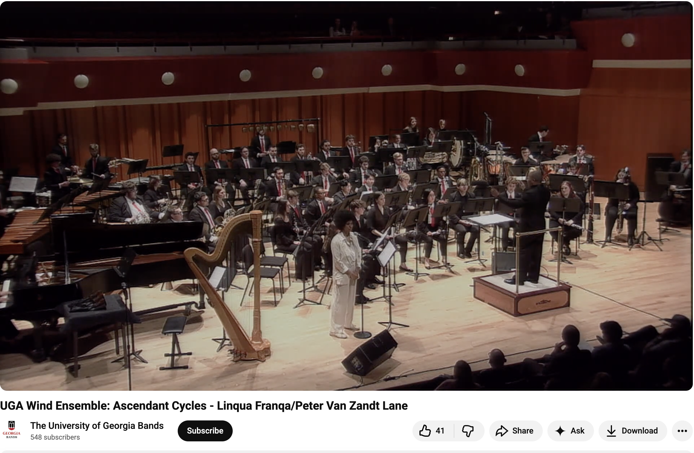 Ascendant Cycles was co-composed by hip-hop artist Linqua Franqqa and composer Peter Van Zandt Lane for the University of Georgia Wind Ensemble's performance at the 2023 CBDNA National Conference.